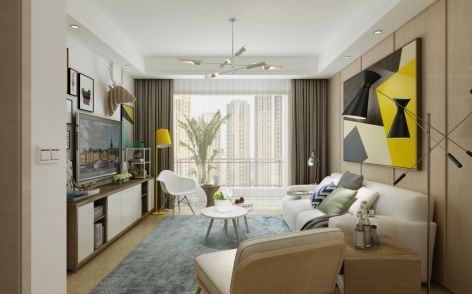 远洋城天骄三居100平北欧风格装修案例风效果图