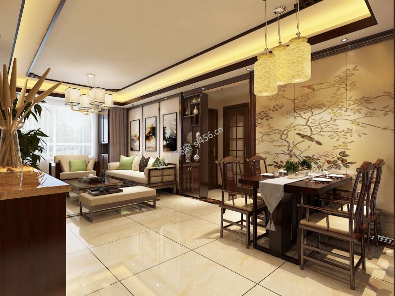金港楼85平中式风格二居室装修案例风效果图