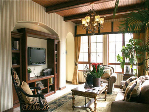 壁炉是美式风格设计的一大要点,也是美式风格中必不可少的元素之一,壁炉不仅可以取暖还具有装饰的功能,而现代家庭中的壁炉大多只有装饰作用;虽说美式风格是不可缺的因素,但是如果面积小的话,还是不建议设计壁炉的,否则空间太过拥挤,也到不到壁炉本身的装饰意义了。