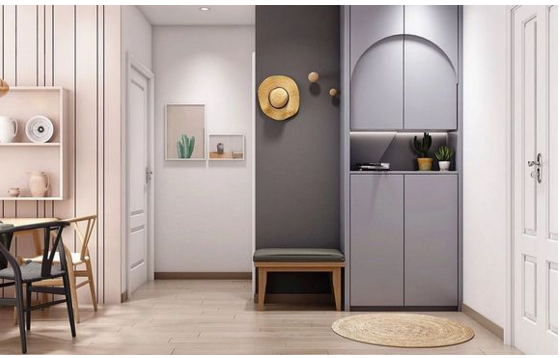 一,门厅柜:门厅是连接室内与室外的桥梁,在门厅处打造一个高柜,方便存放鞋子、外套、钥匙、手提包等,这样可以把杂物统统隐藏起来,还门厅一个清爽环境。