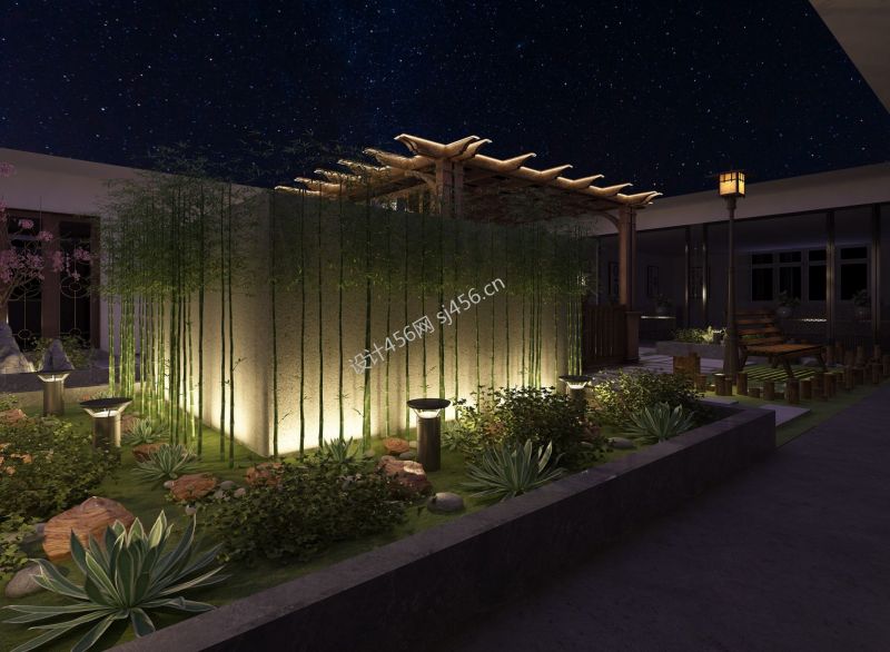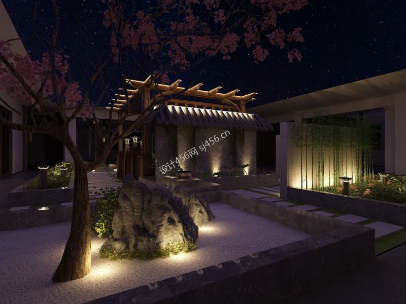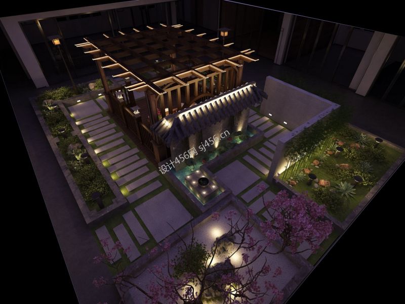 中山市量石装饰 古镇250平米园林案例 天台园林混搭设计