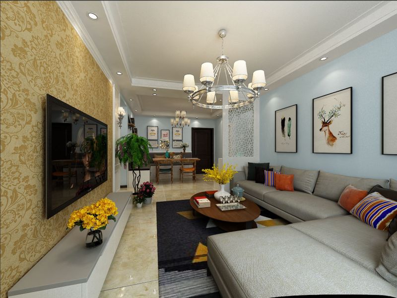 曲阜东城御府120平北欧风格三居室装修设计效果图