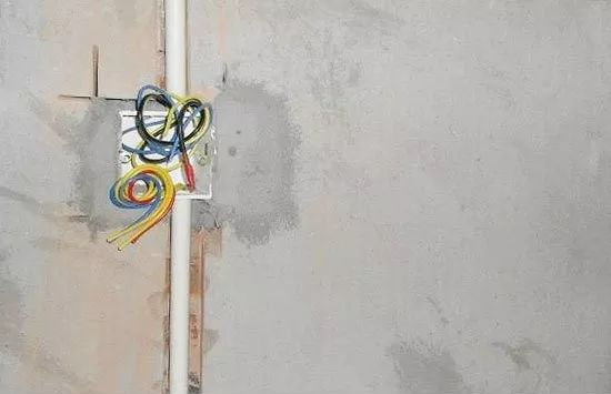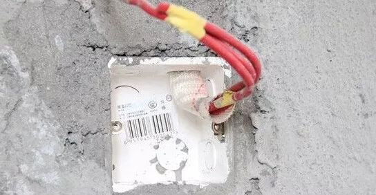 在施工时将电线直接进到墙内,导线没有用绝缘管套好,电线接头直接裸露在外,如下图: