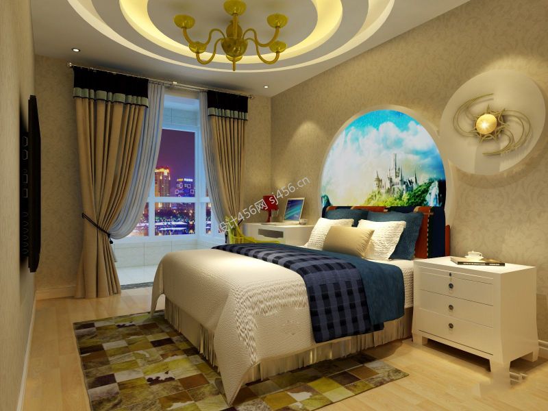 鸿坤理想湾105平米三居室现代简约风格装修效果图风效果图