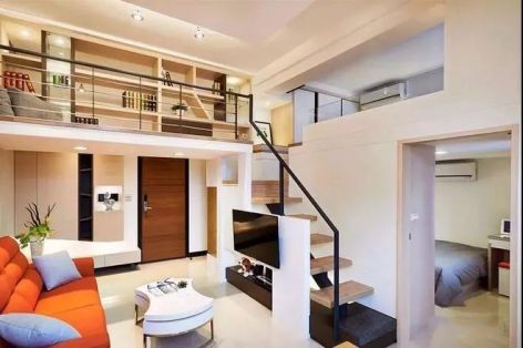 涿州市8090小区50平米复式装修案例风效果图