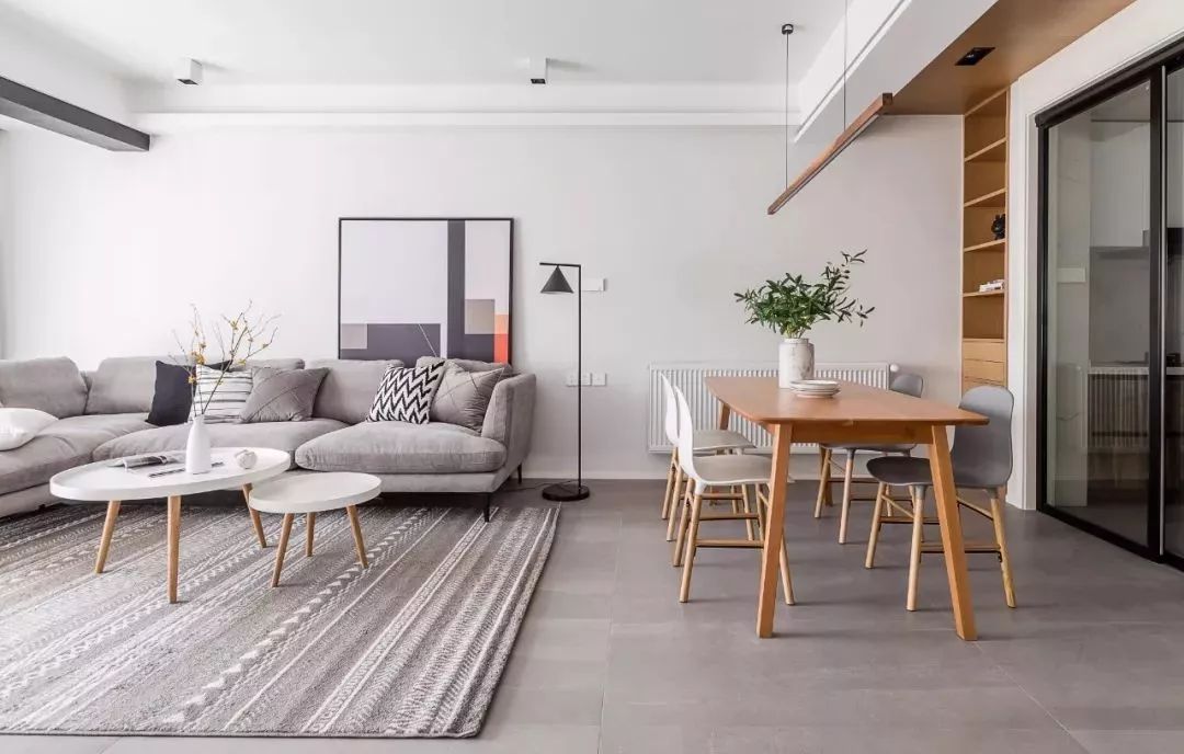 餐厨客开放一体的格局就能很好地打破小空间的硬性阻隔,除了家具的量感,格局的合理规划也显得至关重要。