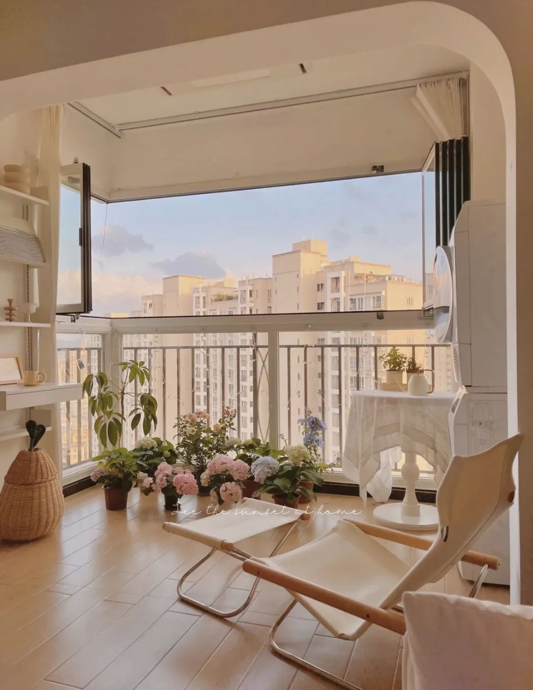 横窗+阳台做一个简单的长飘窗性价比高、实用,保护隐私,轻松把阳光全揽于室内。