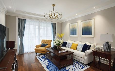 上东红郡98平米美式风格三居室装修案例风效果图