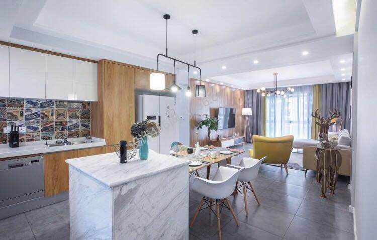 桃源小区115平米简约北欧风格三居室装修案例风效果图