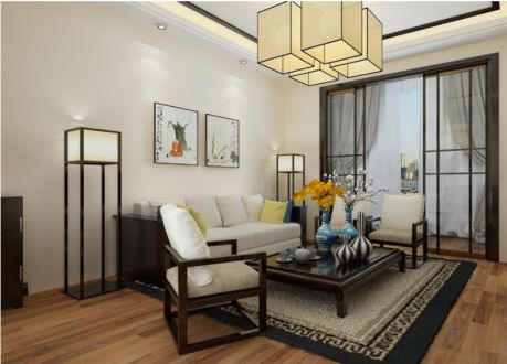 东方湘江湾120平米三居室新中式风格装修案例风效果图