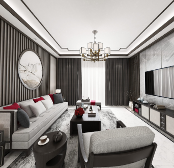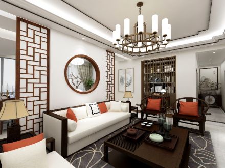 实地·蔷薇国际120平米新中式风格四居装修案例风效果图