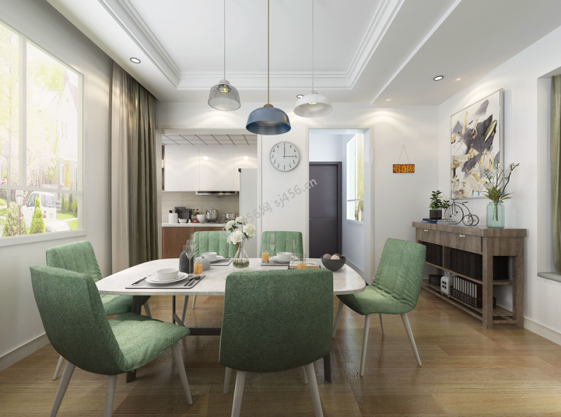 89平米北欧风格三居室餐厅布局设计装修效果图