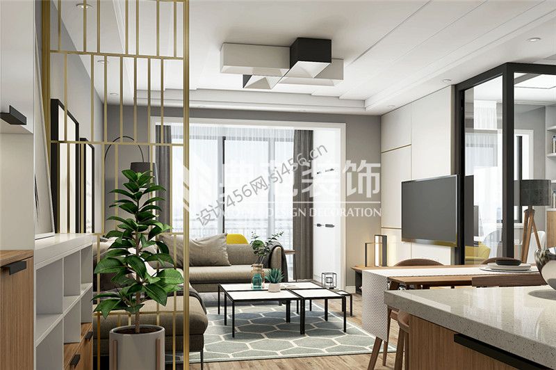 107平米现代简约风格三居室客厅软装装修案例