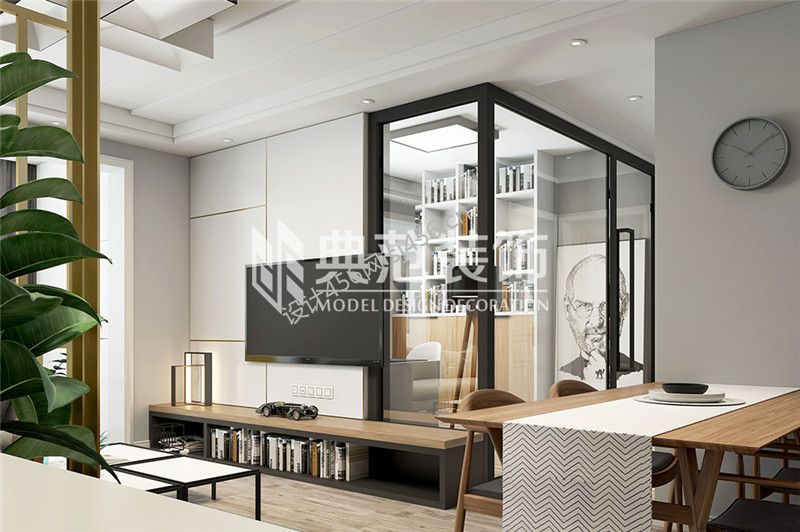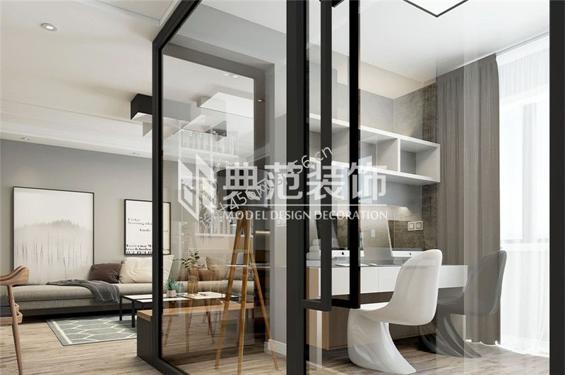 107平米现代简约风格三居室书房隔断设计图片
