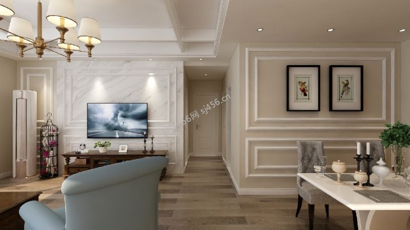 107平米美式风格三居室客厅电视墙装饰装修案例