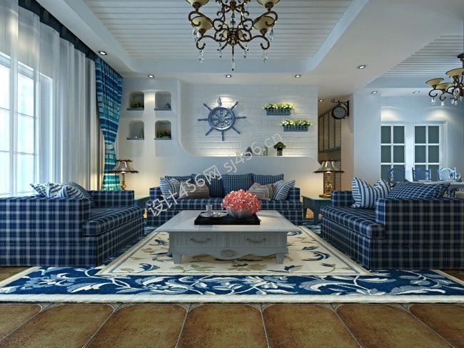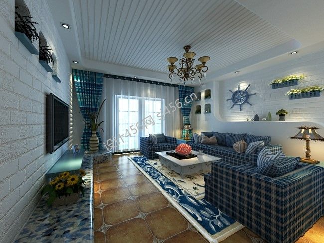 汇福星城118㎡地中海风格三居室装修案例风效果图