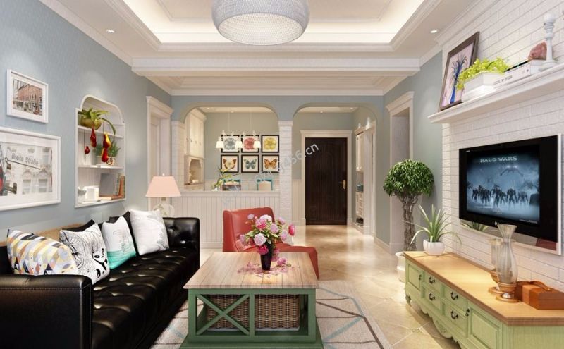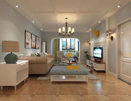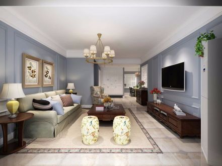 120㎡现代美式风格三居室客厅软装设计装修案例