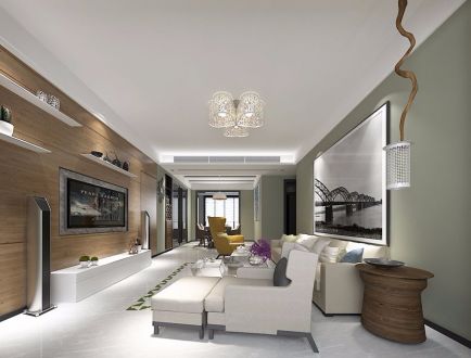 桃源小区120㎡现代简约风格三居室装修案例风效果图