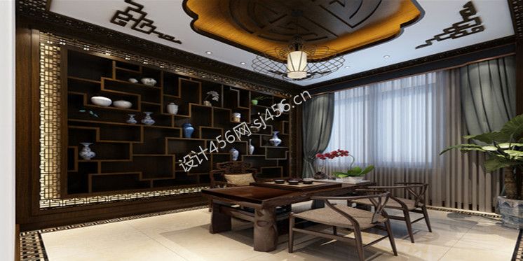 迎宾路3号院460平别墅中式风格茶室博古架装修