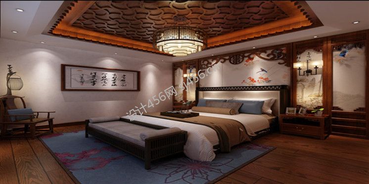 迎宾路3号院460平别墅中式风格卧室吊顶设计图片