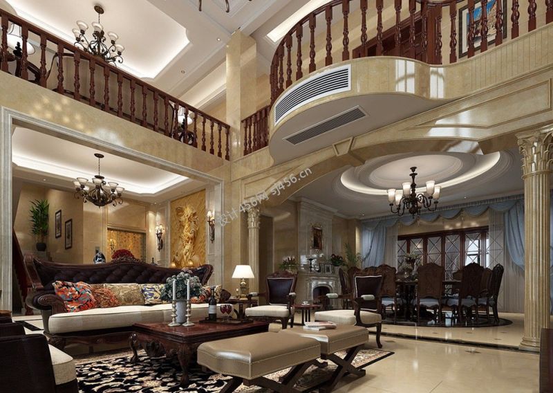 正商红河谷简约欧式220平米别墅装修案例风效果图