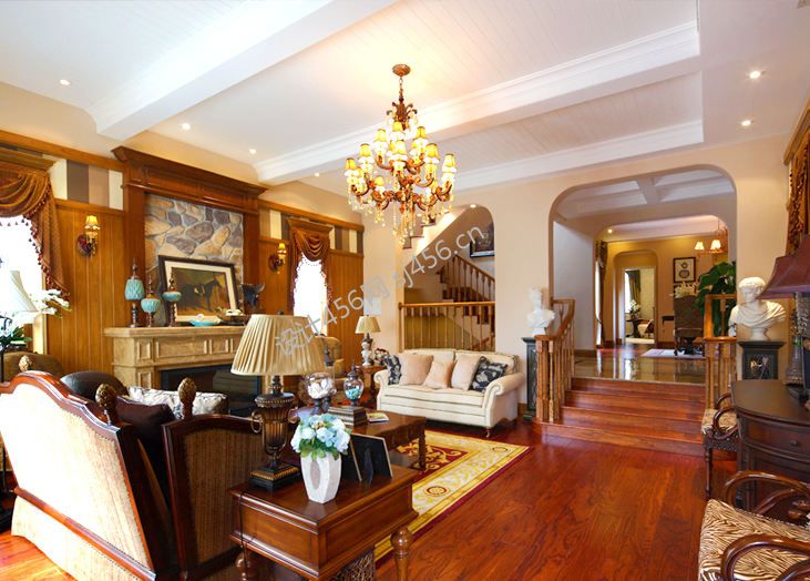 百成上院田园美式220平米别墅装修案例风效果图