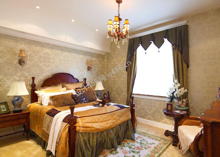 温馨欧式195平米别墅卧室窗帘家装效果图