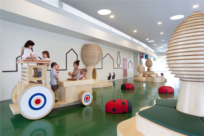 首先在设计的时候应该注意平面形式。所谓平面形式就是能满足孩子们在活动室的各种功能,例如可以做游戏、各种活动、老师方便教学等等。想要具备这些功能,那么幼儿园的平面形式就应该是多样的、生动的、还要富有节奏感。一般来说国内外的活动是最常见的平面形式有六边形、八角形或者扇形这些平面结构,这些形状都是有助于室内布局的,并且结构相对来说比较简单容易施工,最主要是符合孩子们的心理特征。